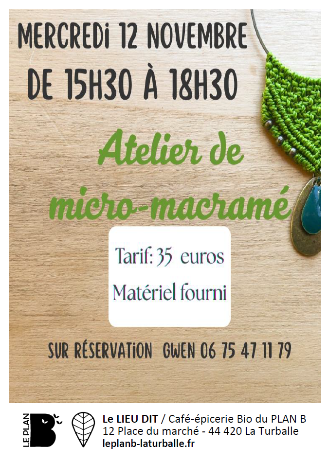 Mercredi 12 novembre à 15h30 : Atelier micro-macramé