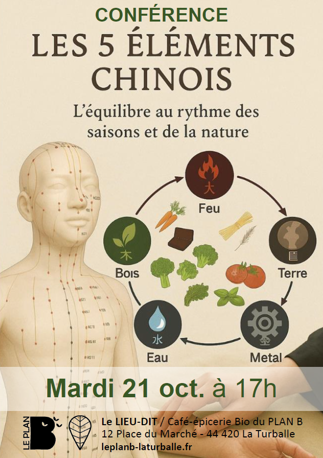 Vendredi 21 octobre de 17h :  CONFÉRENCE sur les 5 éléments